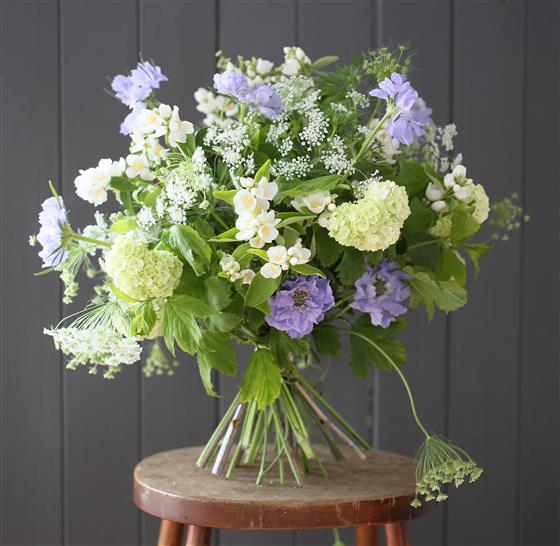 A hand tie bouquet in a loose informal feel inspired by holidays gone past in Cornish fields.