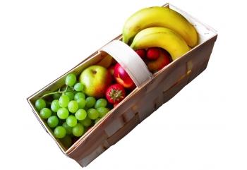 The mixed basket contains a mixture of seasonal fruits, along with the usual apples, bananas, pears, oranges and grapes.